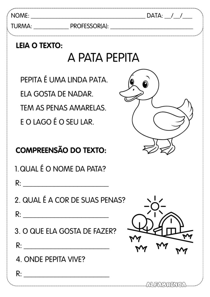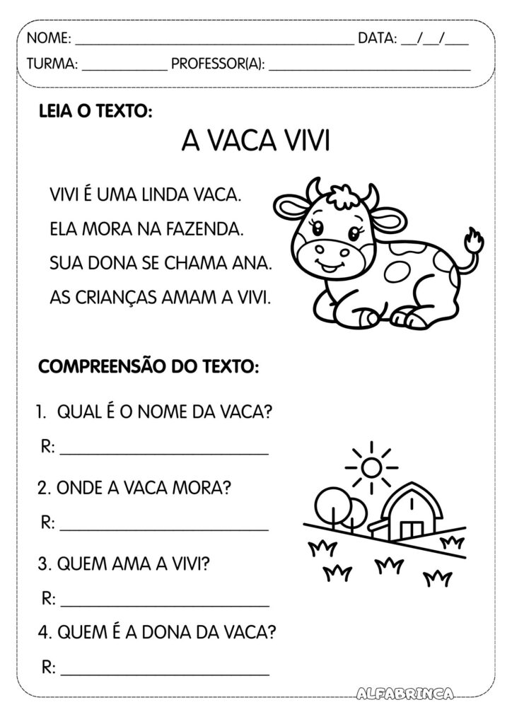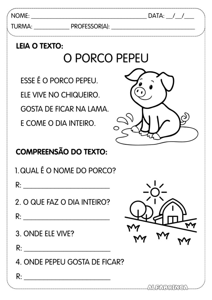 Leitura e interpretação – Animais da Fazenda