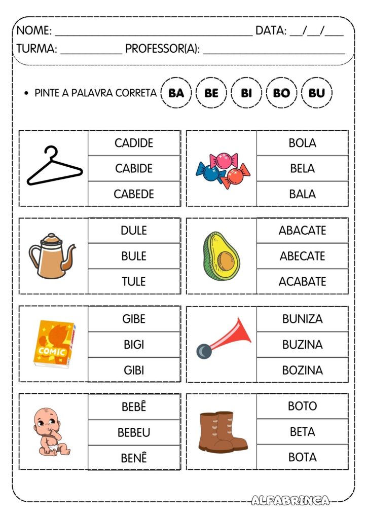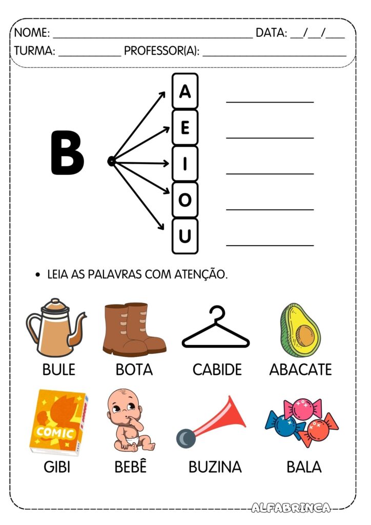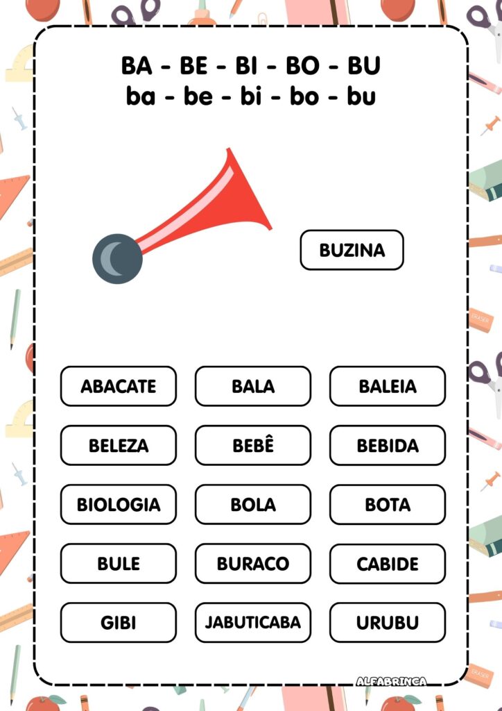 – Iniciar, continuar ou consolidar o conhecimento das sílabas simples BA, BE, BI, BO, BU;