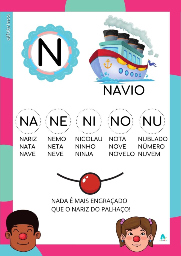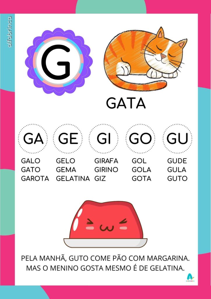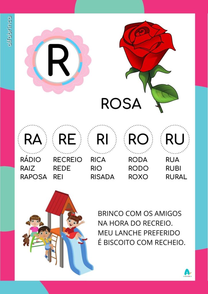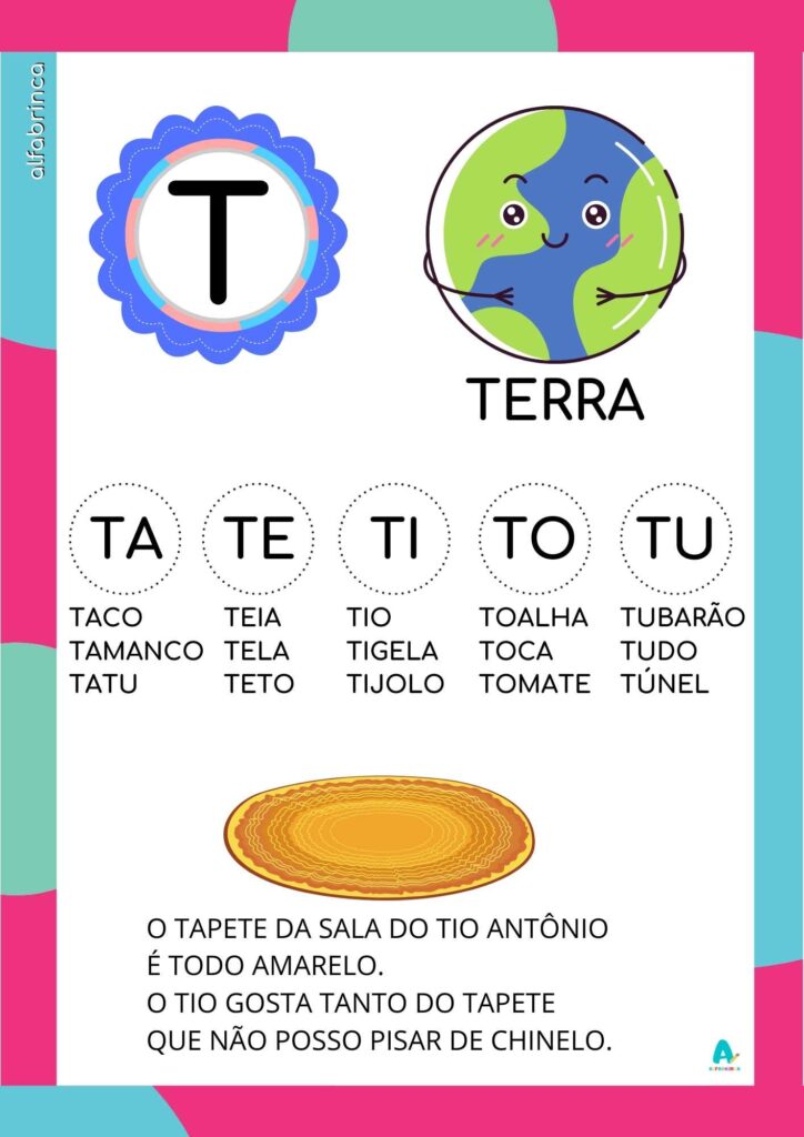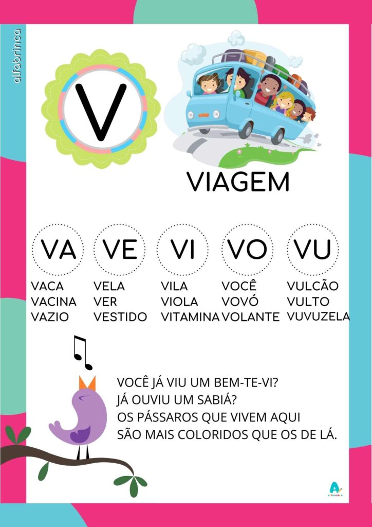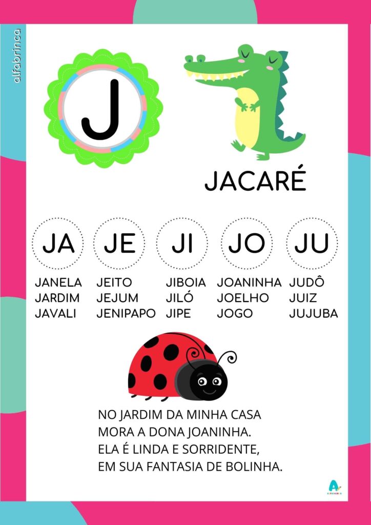 Além disso, cada ficha inclui um pequeno texto com rimas infantis, criado com palavras que utilizam a letra em questão. Essa estratégia torna o aprendizado mais divertido, estimula a consciência fonológica e ajuda no desenvolvimento da fluência leitora.