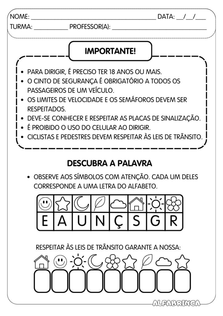Trabalhar o tema trânsito na escola com as crianças é importante para formar cidadãos mais conscientes e responsáveis desde cedo. Ao aprender sobre regras de circulação, sinais de trânsito, segurança no transporte escolar e cuidados ao andar a pé ou de bicicleta, os alunos desenvolvem noções de respeito, responsabilidade e convivência em sociedade. Além disso, esse aprendizado contribui para a prevenção de acidentes, promove hábitos seguros e ajuda a criar uma cultura de valorização da vida, que será levada para além da escola e refletida em suas atitudes no dia a dia.